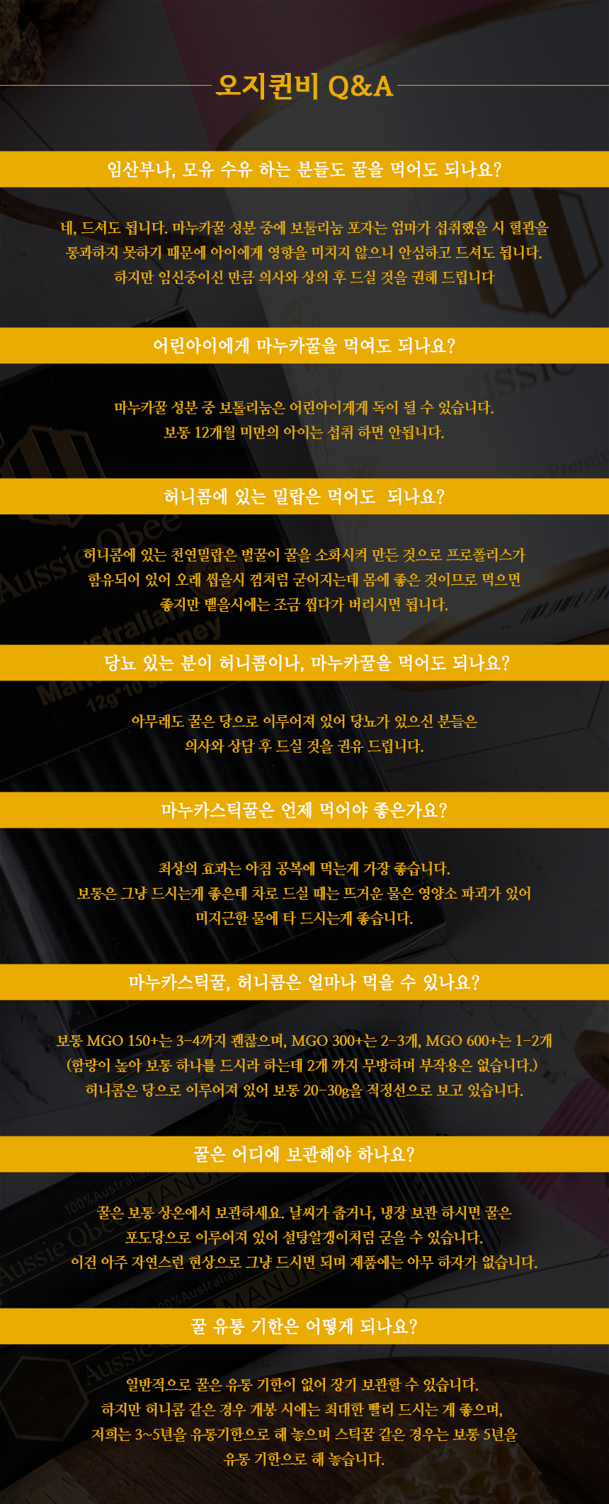 - 소비자 안전을 위한 주의사항: 1세 미만, 꿀, 꽃가루 알러지가 있으신 분, 당뇨가 있으신 분은 섭취를 삼가해주세요