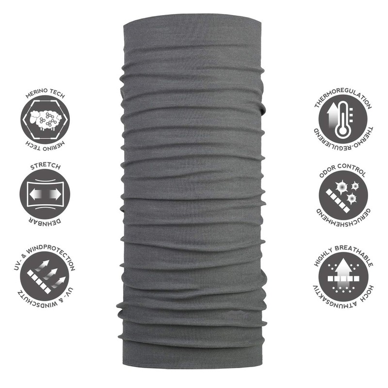 P.A.C. Merino Tech Multifunctional Scarf, Outdoor Scarf, Seamless Neckerchief, Sustainable Tube Scarf, Headband, Various Designs, Unisex, 10 Wearing Styles, graphite