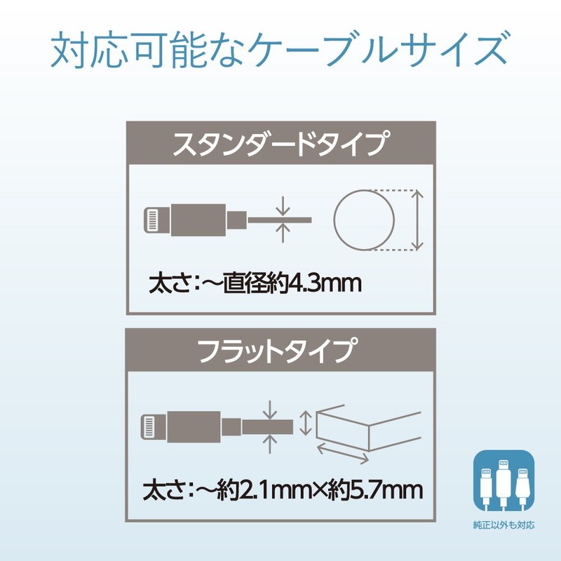 - Compatible with other than original lightning cables. Please refer to the website for compatible cable sizes
