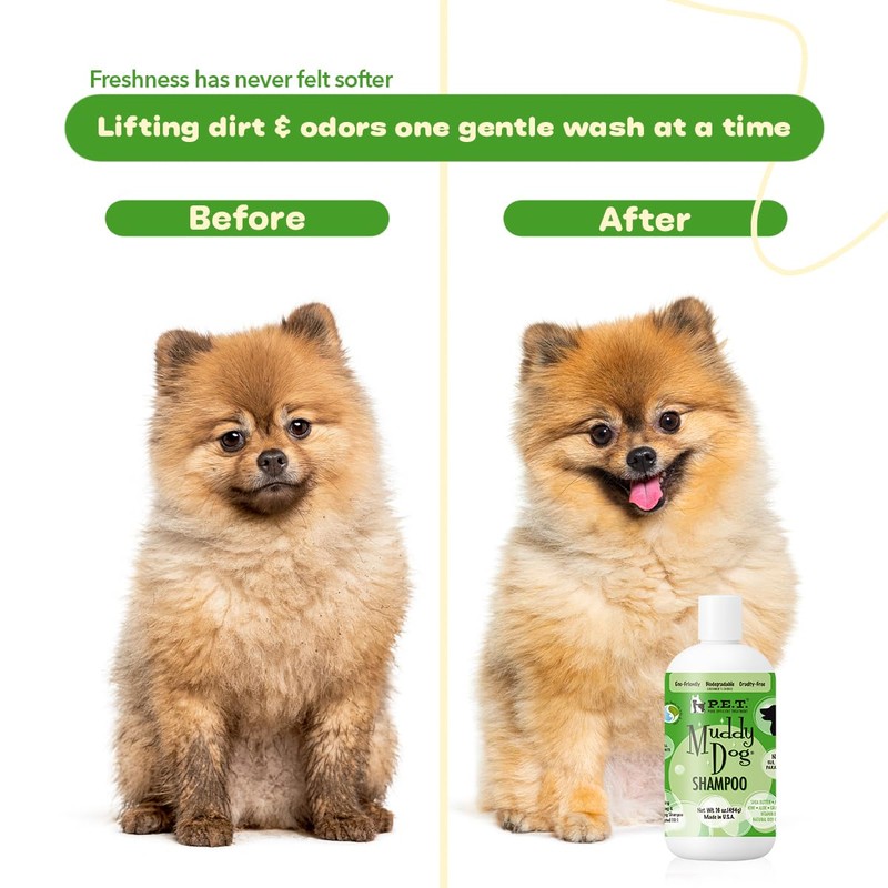 P.E.T. Muddy Dog Deep-Clean Shampoo — Shea Butter, Papaya & Kiwi Blend — 10 : 1 Concentrated Moisturizing, Degreasing & Deodorizing Formula — Cosmetic Grooming (Not a Pesticide) — 16 oz