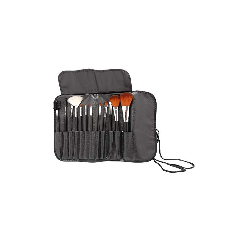 - A 12 piece brush set presented in an elegant black faux leather brush bag.