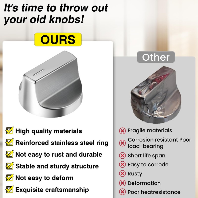 • Upgraded DesignOur whirlpool W11366438 knobs replacement used electroplating and polishing process can not only make the control knob more bright and beautifil, but also make the knob more resistant to high temperature and increase the service life of the knob.