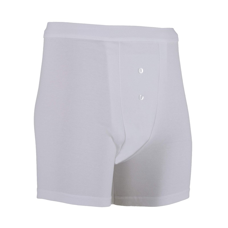 - 100% cotton short with bulit-in absorbent pad with waterproof back.
