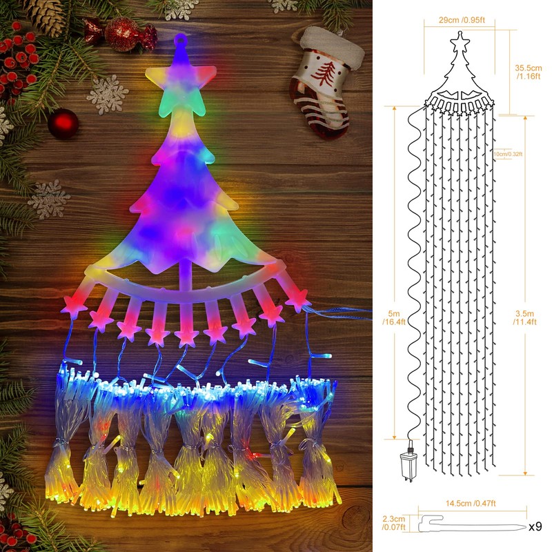 - 【Perfect Outdoor Decoration】Hanging the 344LED outdoor decoration waterfall lights on your windows, rooms, yard, lawn, walls, Christmas trees and cars. It connects 9 strands of 11.8ft stars string light, which looks like a waterfall, creating a comfortable and warm holiday atmosphere!