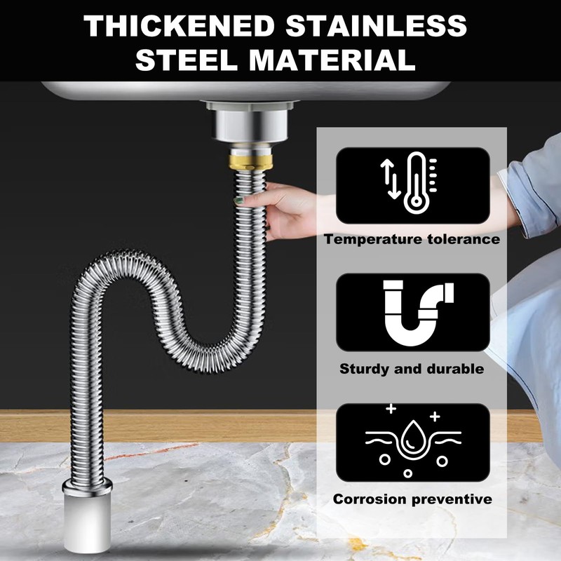 Transform your kitchen sink's drainage system with this premium 201 stainless steel P-trap assembly. kitchen drain plumbing kitThe flexible, accordion-style design allows for easy installation and adjustment to fit various sink configurations while maintaining proper water flow. This durable P-trap features a polished chrome finish that complements modern kitchen aesthetics and resists corrosion.p trap kitchen sink The robust construction effectively traps debris and prevents clogs while maintaining smooth drainage.15" vanity flexible drain pipe Its expandable and adjustable design makes it ideal for both standard and deep basin sinks, accommodating different heights and angles. The unit includes a removable trap for convenient cleaning and maintenance. Perfect for replacing old, leaky pipes or upgrading your existing plumbing, this P-trap offers reliable performance and professional-grade quality. Installation is straightforward, requiring basic plumbing tools, and the sturdy stainless steel construction ensures long-lasting durability. kitchen sink p trap design helps prevent unwanted odors from entering your kitchen while maintaining proper venting and drainage function.