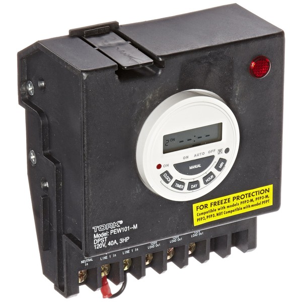 P1100 Series Swimming Pool Timers, 7 Day Digital Control, 120 VAC Input Supply, DPST Contact, 40A Resistive/Inductive Rating, 3 Hp