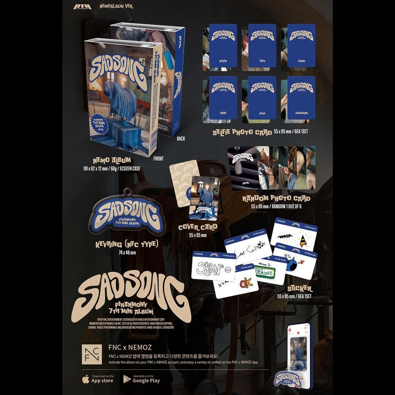 P1Harmony - 7th Mini Album [SAD SONG] (Nemo Album Ver.) Nemo Alum + Selfie Photo Card + Cover Card + Random Photo Card + Keyring + Sticker + 3 Extra Photocards