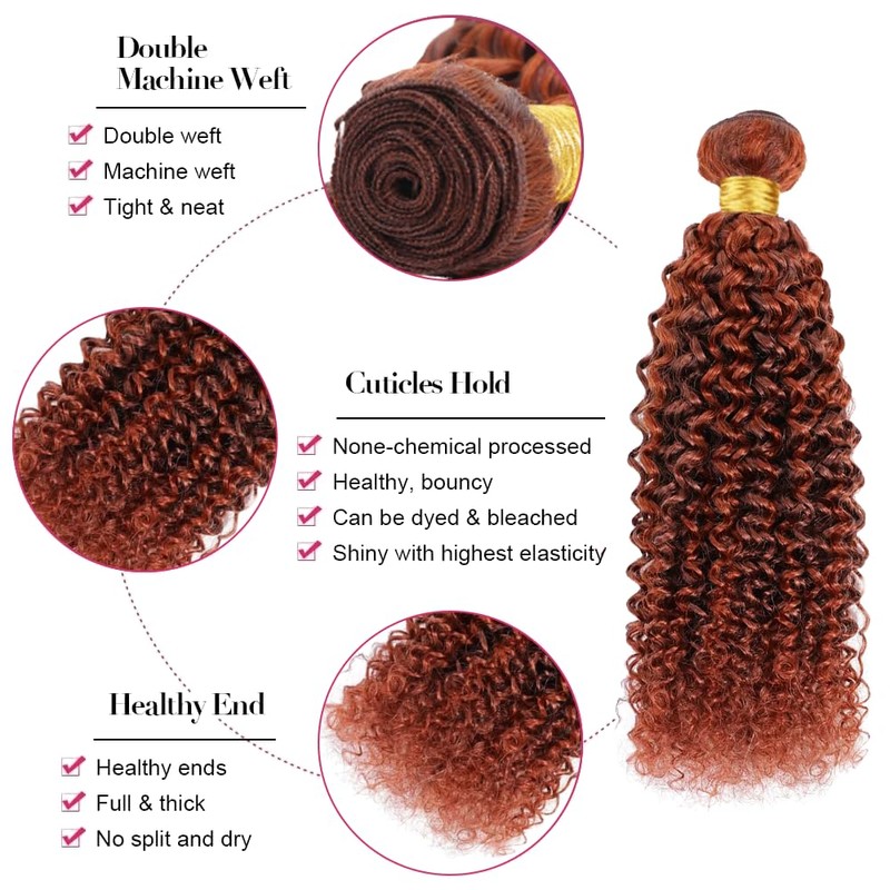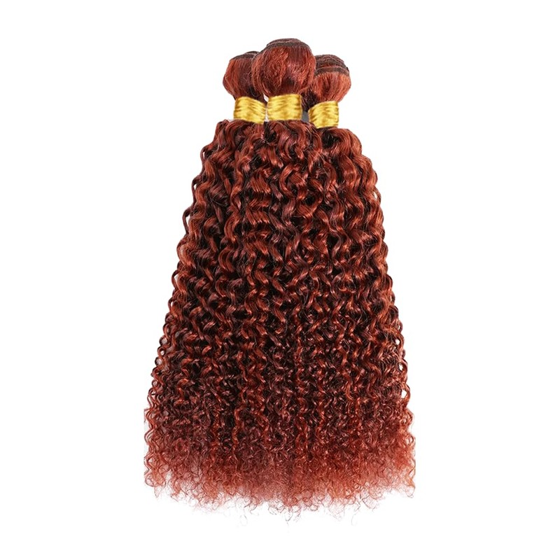 - Ombre Kinky Curly Bundles Hair Color: F33/350 Bundles,Copper Red Curly Wave Human Hair Bundles,Beautiful and Fashion