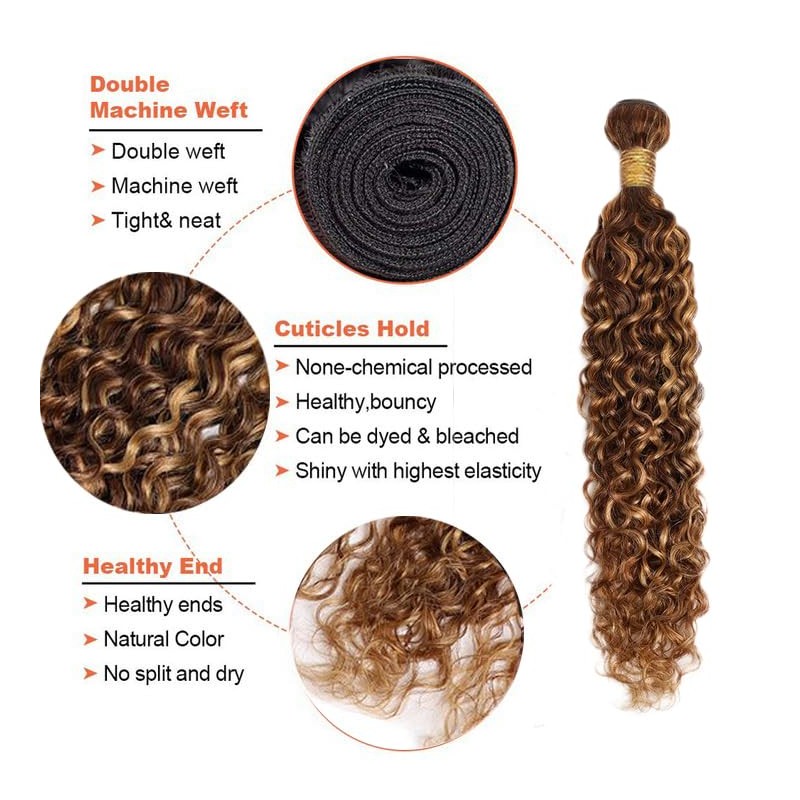 - 【Blonde Water Wave Bundles Color】:The Bundles is P4/27, Brown and Honey Blonde Color. Can Be Straightened, Curled, Styled as Your Own Hair.