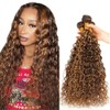 P4/27 Human Hair Bundles Honey Blonde Water Wave Bundles 22 24 26 Inch Unprocessed Brazilian Virgin 2 Tone Water Wave Bundles Human Hair Extensions for Black Women