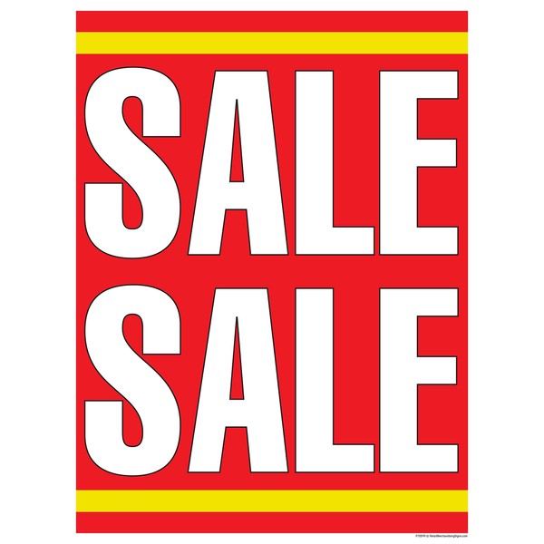 Furniture and Retail Sale Sign Window Posters - With over 180 window poster designs and 3 sizes of sale signs to choose from 22" x 28", 25" x 33", and 38" x 50". Sales Signs allow you to promote all of your sales and specials by grabbing the attention of potential customers! Most posters have matching sale tags and banners. Printed on quality tear resistant vinyl material. Let your customers know about all of your sales with our wide assortment of sale signs from grand opening, anniversary sale, furniture sale, carpet sale, no tax sale, mattress sale, red tag sale, made in the USA sale, floor sample sale, and many more to choose from. We also carry a large selection of holiday and seasonal sale signs. Retail Merchandising Signs LLC signs are proudly manufactured by us in the USA.