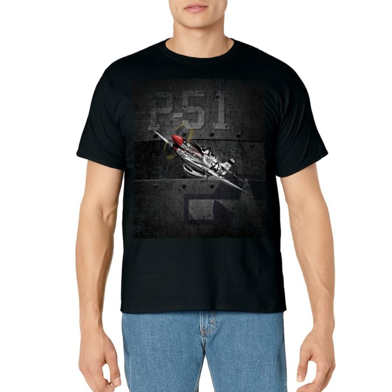 P51 Military Fighter Airplane WW-II Warbird Cartoon T-Shirt