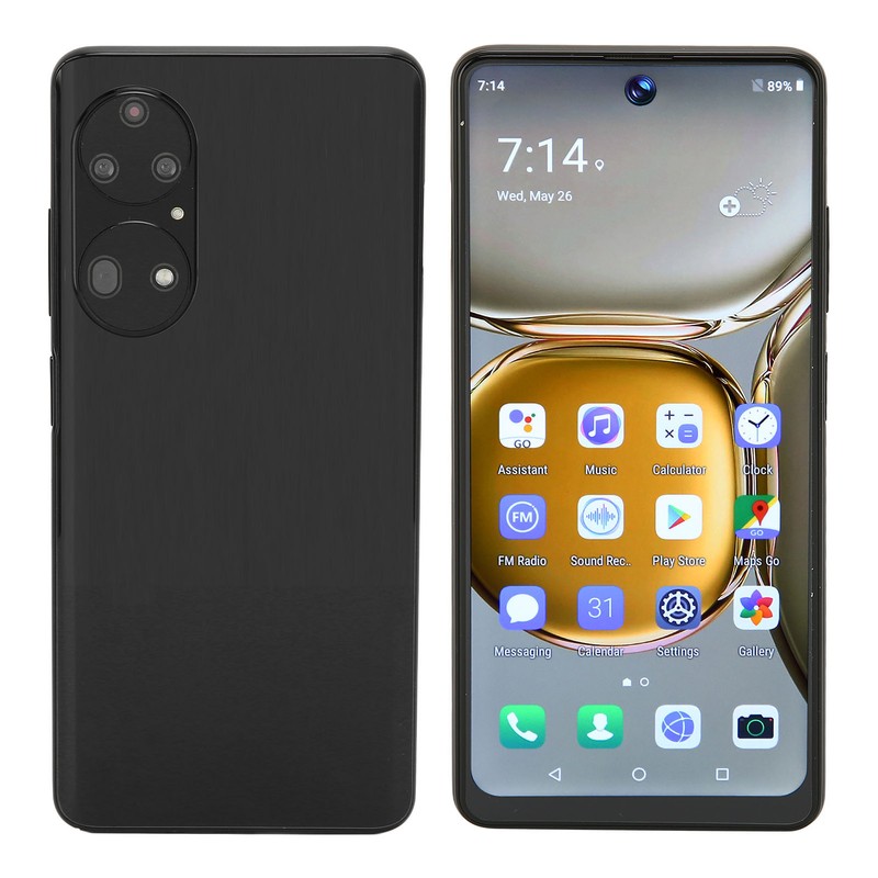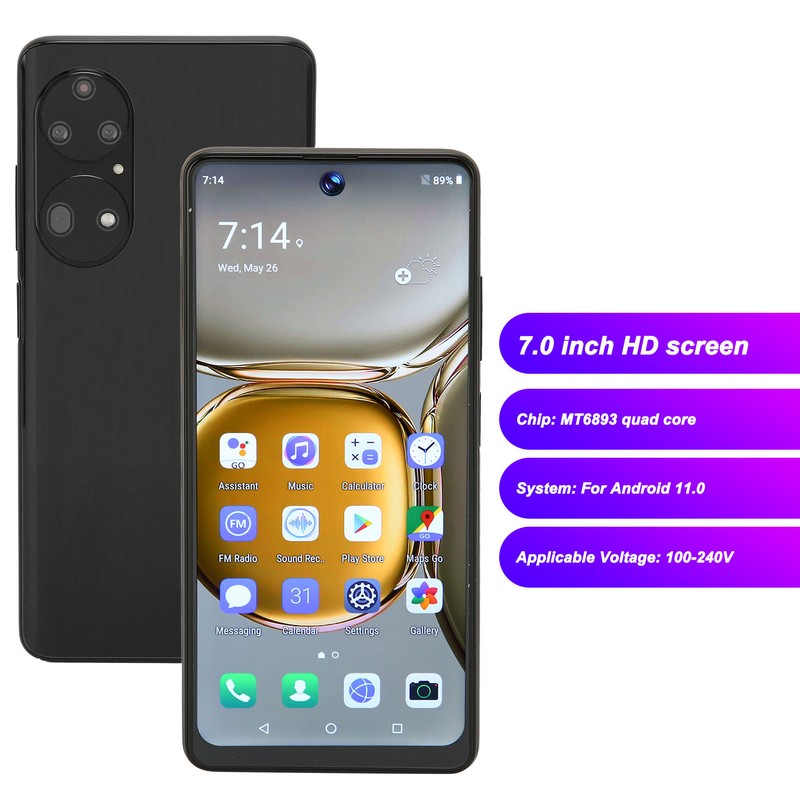 P60pro Smart Phone 7.0in 4GB RAM and 64GB ROM MT6893 Quad Core 8000mAh Battery for Android 11.0 Phone Black 100‑240V UK Plug