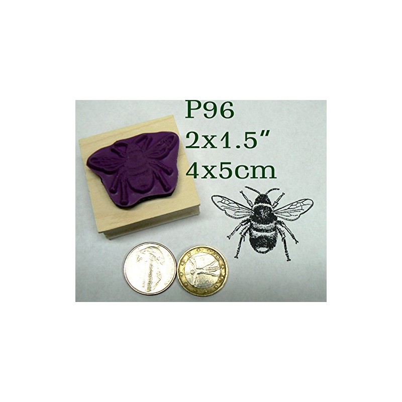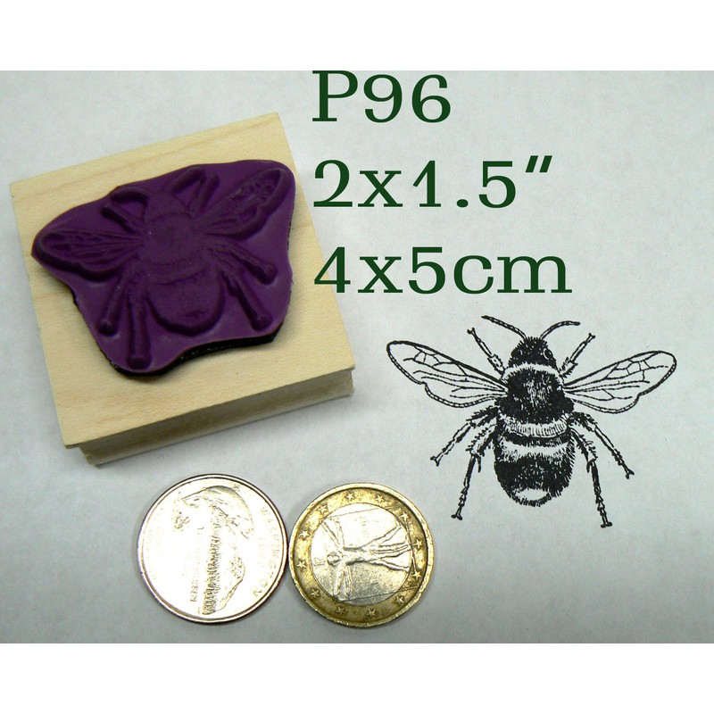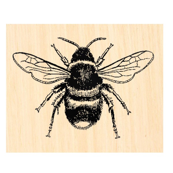 Large bee rubber stamp. See images for details. Made from premium deep etched rubber. NO polymer used. for use with all inks. Maple wood mounted.