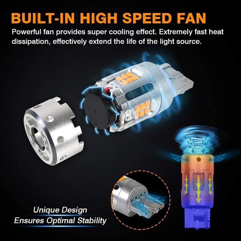 PA HYUGA 2PCS 7440 WY21W T20 LED Turn Signal Bulbs with Cooling Fan CANBUS An...