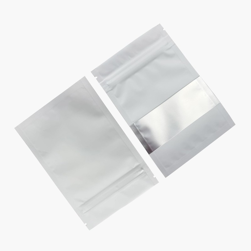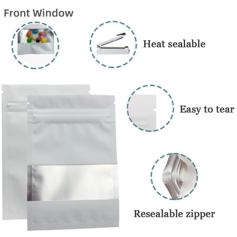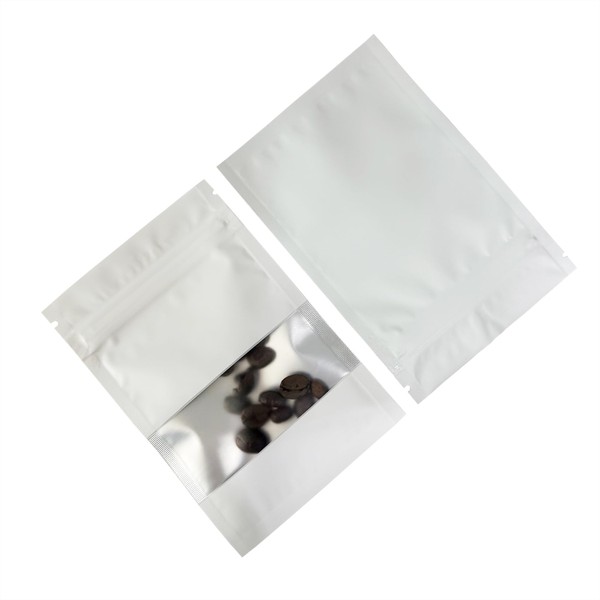PABCK 100Pcs Clear Window Matte Mylar Pack Food Storage Bag for Zip Heat Seal Bag Lock Resealable Pouch Smell Proof Zipper Lock Coffee Packet (White, 8x12cm (3.2x4.7 inch))