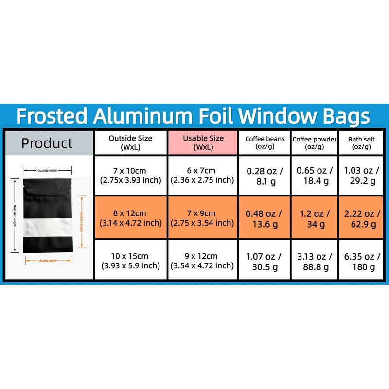 - Usage: This foil bag is perfect for food packaging. Such as candy, coffee powder, sugar, seeds, spices. And also great for packing jewelry, small parts, coins, ear rings and so on