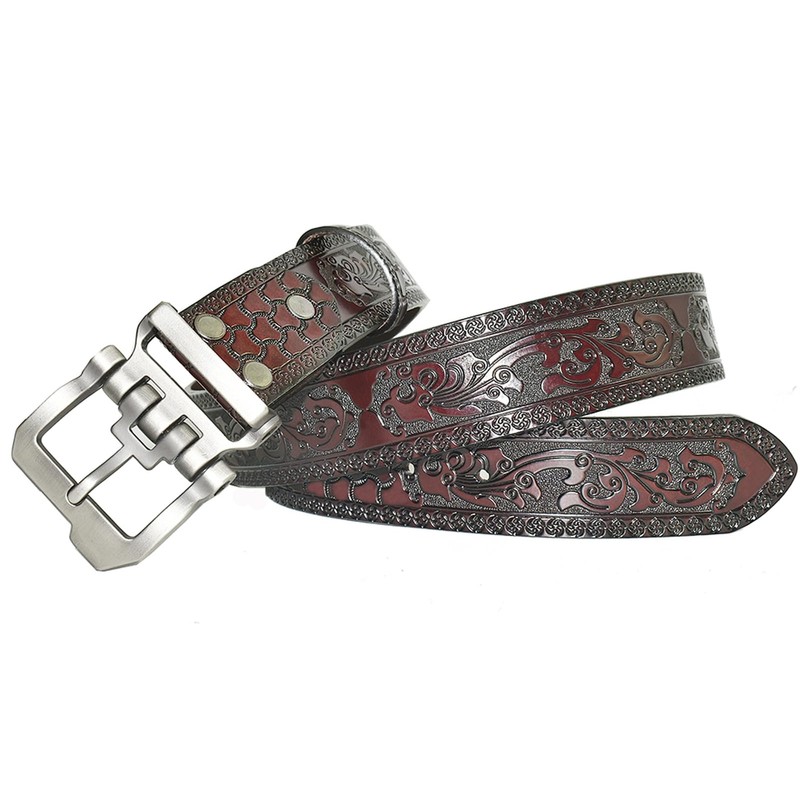 PACDE Western Retro Cowboy Belt Genine Leather Cowskin Jeans Flower Emboss Men Belt(4011ZKCoffee,for36-37" waist size)