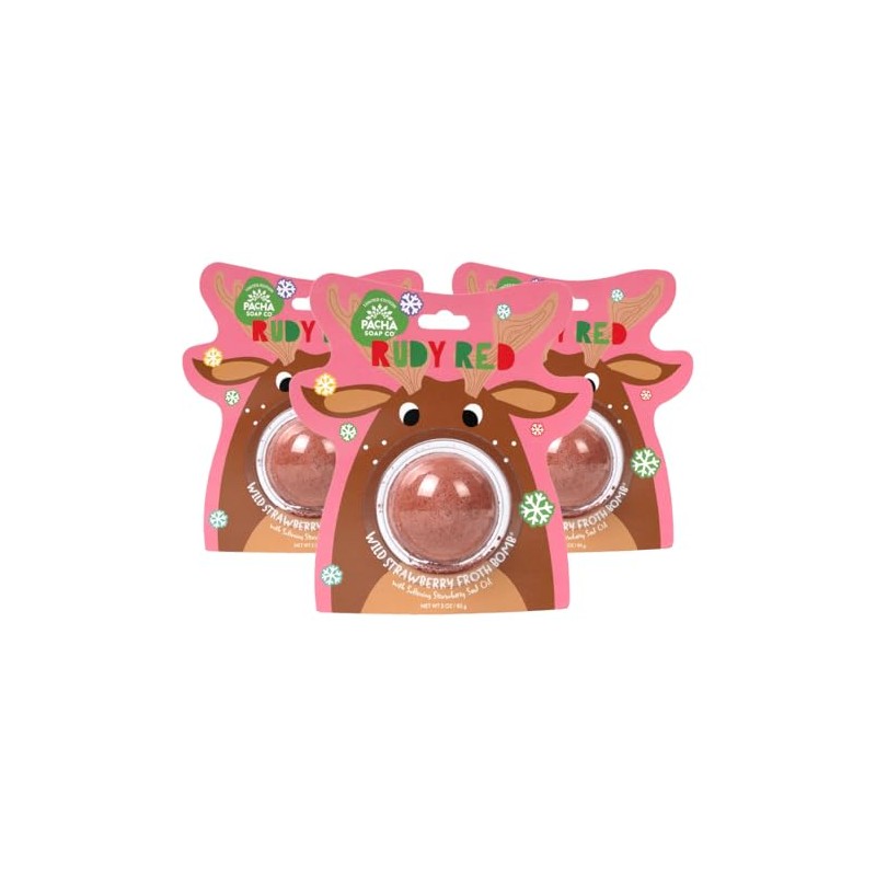 Pacha SOAP Holiday Bath Bomb Card 3 Pack, Rudy Red, Moisturizing, Pacha Peaces Variety, Naturally Derived & Handcrafted in The USA