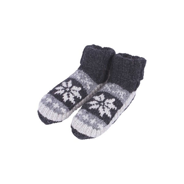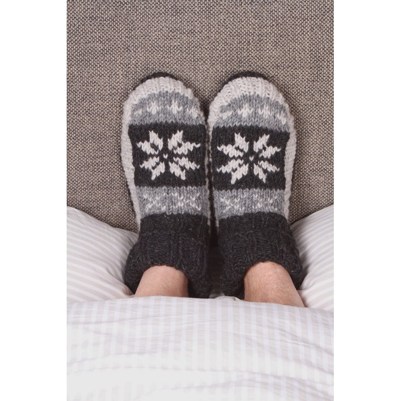 Pachamama Men 100% Wool Lined Sofa Socks Handknitted Fair Isle Charcoal Large 8-11 Handmade Extra Warm