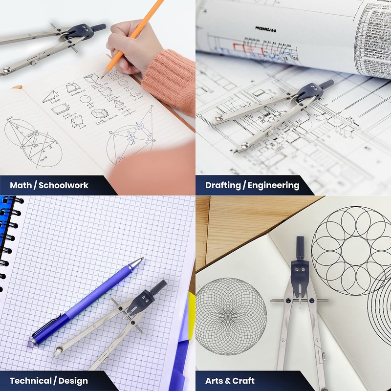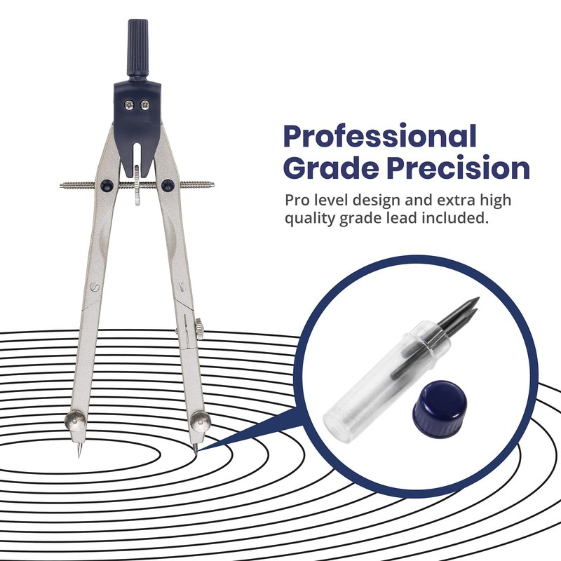 • MAKE THE ULTIMATE COMPASS DRAWING - Create precise circles with this metal compass for geometry, use it as a drafting compass, or as a drawing compass to bring your ideas to life. Comes with a 6 inch break leg, universal adaptor, ruling pen, and additional lead.