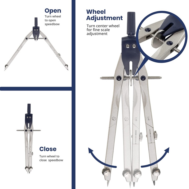 About the speed bow compass: The Pacific Arc Metal Professional Compass is the perfect item for any drafter, student, or professional looking for a speed bow compass. The additional accessories provided make this one of the most versatile compass tools for any artist. Made with strong metal and plastics, this compass tool will last for a long time. About Pacific Arc: What makes you happy? What drives you? This is how our story begins. With you. Since 1979, Pacific Arc has been creating art and drafting products with the user in mind. As you have constantly innovated and ideated, Pacific Arc continues to be driven by the passion to bring you the best products and supply you with the tools to bring your ideas to life. It’s our mission to foster imagination and provide you with the best tools for the job. With an excellent product line and numerous happy customers, we continue to make this dream a reality, creating products that are not only high quality, but affordably priced.