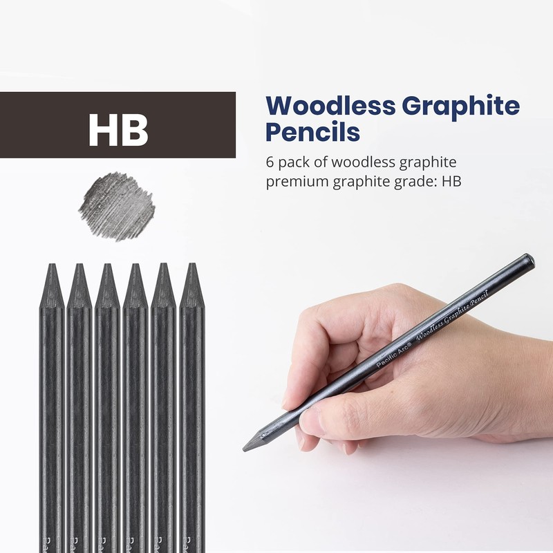 Pacific Arc Woodless Graphite Pencil 6 Pack Set, HB, for Sketching, Drawing, ...