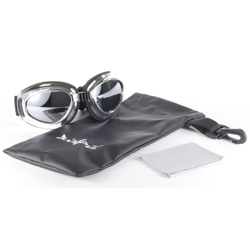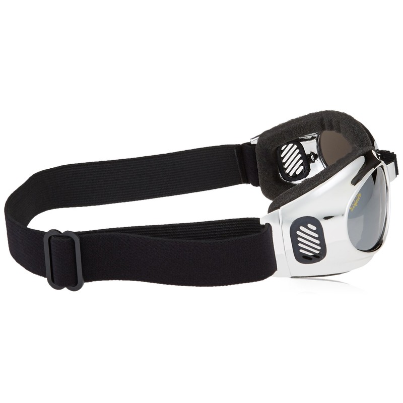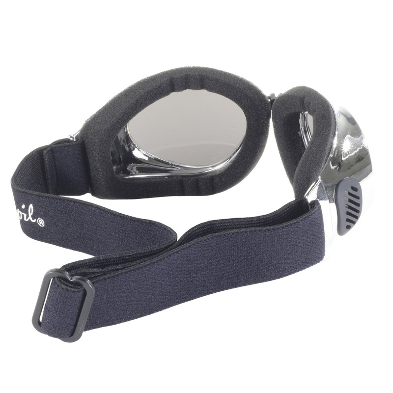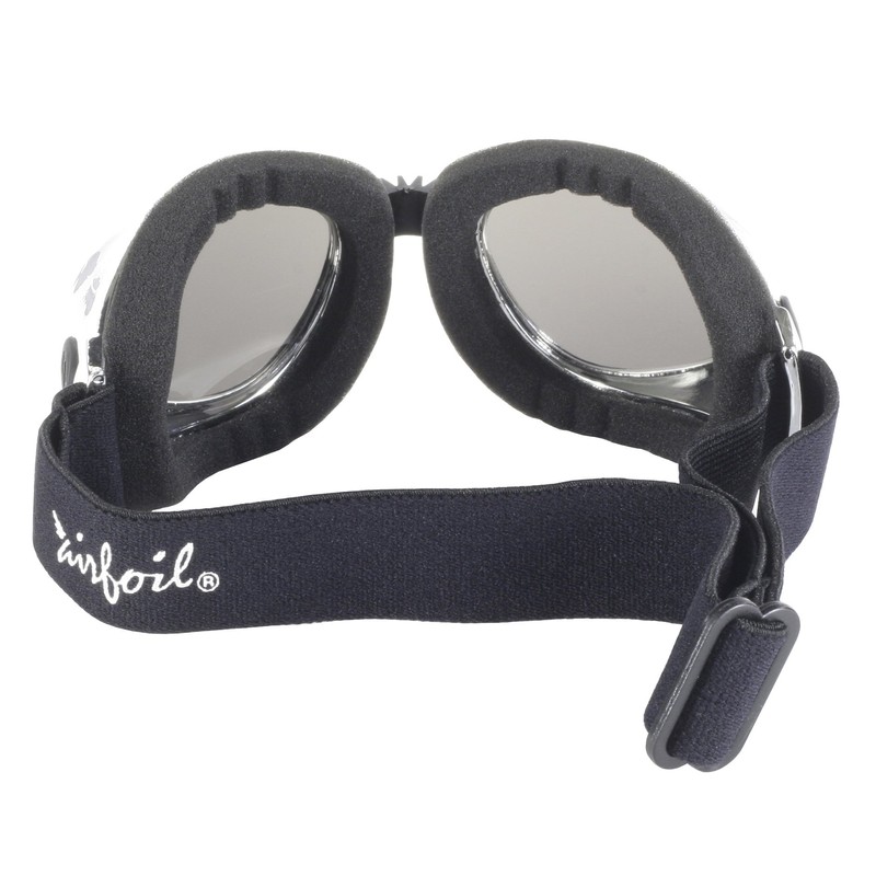 Airfoil silver mirror lens goggles has flexible nose bridge for comfortable fit. 100 percent shatterproof polycarbonate lenses, case and cleaning cloth included.