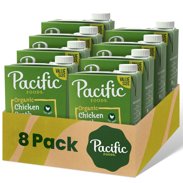 - Eight (8) 48 oz cartons of Pacific Foods Organic Free Range Chicken Broth