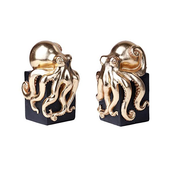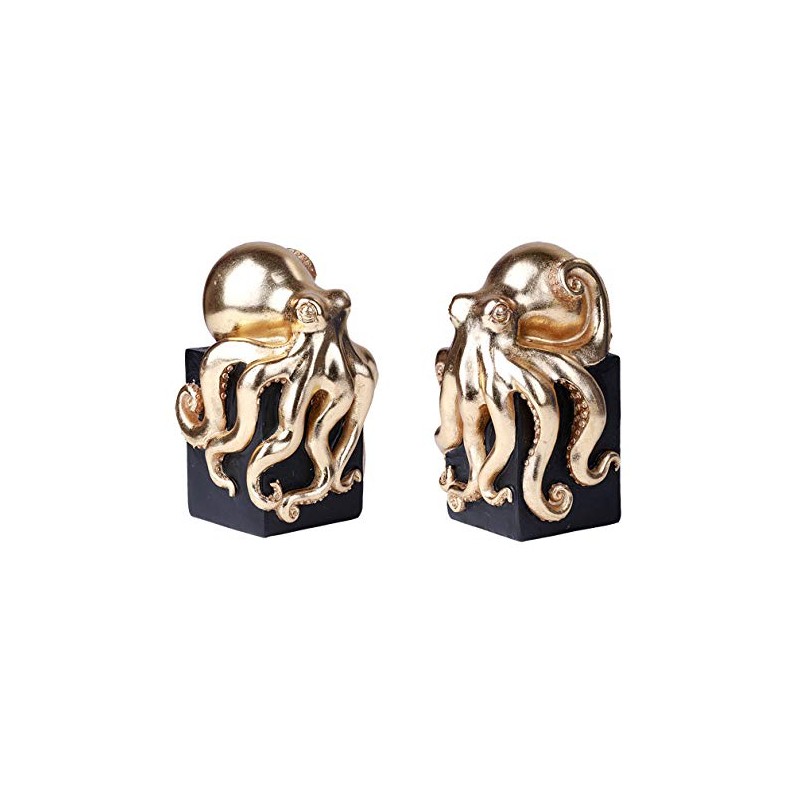 Pacific Giftware Golden Octopus Resin Figurine Bookend Set