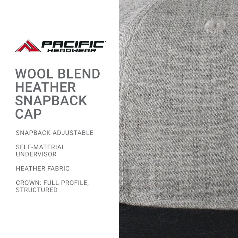 Pacific Headwear Standard Wool Blend Snapback Cap, Light Heather/Black