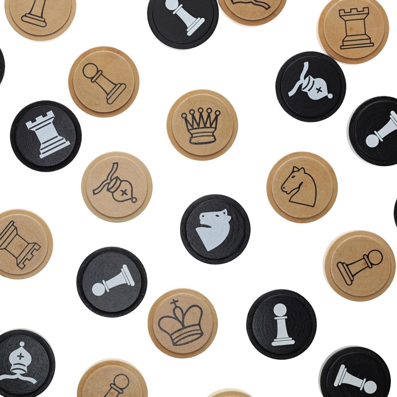 • Complete Set Included: The set includes 32 wooden backgammon and checker game pieces with chess symbols printed on them, all stored in a convenient carrying pouch. Each piece is designed for easy handling, can be stacked for checkers and has a luxurious feel, enhancing your gameplay experience.