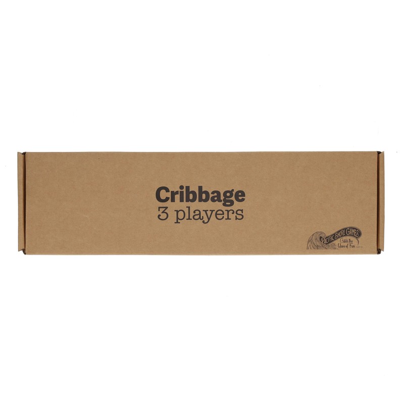 Pacific Shore Games Wooden Cribbage Board Game Set, Continuous 3 Track for 2-3 Players with Card Storage