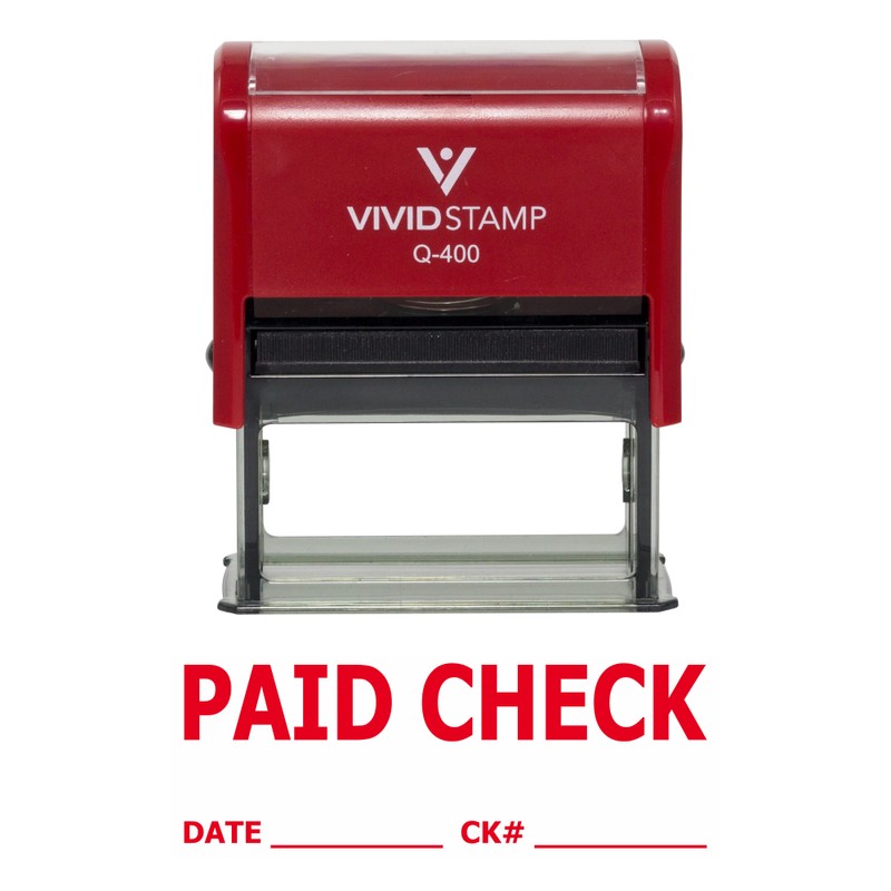 Pacific Stamp and Sign PAID CHECK w/ DATE CK# Line Self Inking Rubber Stamp - Medium - 9/16" x 1-1/2", Red