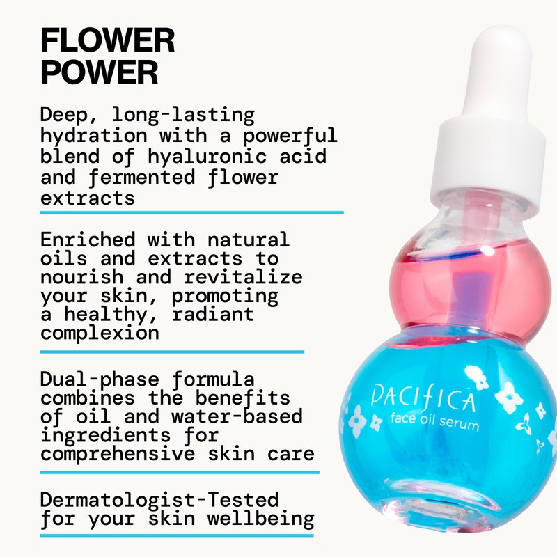 Pacifica Face Oil Serum - Flower Fix Bi-Phase Hydrating Skin Barrier - w/Hyaluronic Acid & Natural Botanical Ingredients - for Dry Sensitive Skin Vegan & Cruelty-Free Dermatologist Approved