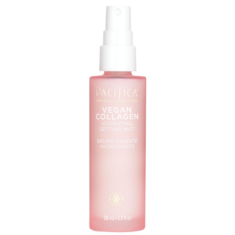 Set & refresh your makeup with our hydrating Vegan Collagen setting mist. Infused with a blend of skin-loving ingredients including vegan collagen, Vitamin C, jasmine and white tea, this lightweight mist helps hit refresh on tired, dehydrated skin while setting makeup with a fresh, dewy finish. Mist as the final step in your makeup routine or throughout the day when you need a quick hit of hydration.