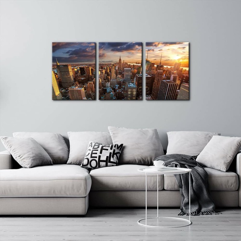 Pacimo 3 Panels New York City Wall Art Decor Skyline of US Canvas Pictures Modern Artwork Skyscrapers Buildings Cityscape at Sunset Painting Prints on Canvas for Home Living Room - 12" x 16" x 3