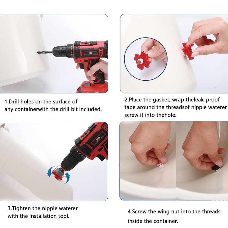Horizontal design: Our innovative faucet adopts a unique horizontal design, which will not drip like a vertical pacifier. Establish a permanent water supply system for your chicken.