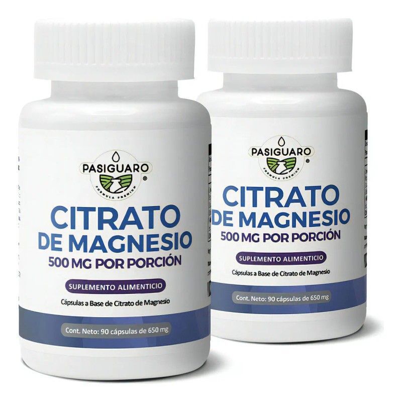 Pack 2 Citrato De Magnesio 90 Cápsulas 650 Mg duo Rinde 90 Días Sin Sabor Pasiguaro