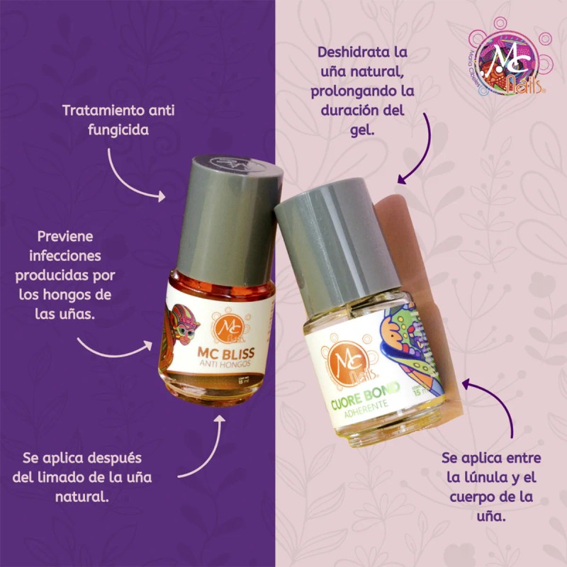 ¡Pero la perfección no termina ahí! Adéntrate en el mundo de la protección y el cuidado con nuestro Anti-Hongos MC BLISS. 🛡️ Piensa en él como tu escudo invisible, aplicado al finalizar tu manicura o pedicura, antes de sumergirte en el mundo del acrílico o el gel. Este elixir no solo es un tratamiento preventivo antifúngico, sino también un deshidratador de uñas inteligente. ¡Es como darle a tus uñas un respiro fresco y revitalizante! 🌬️