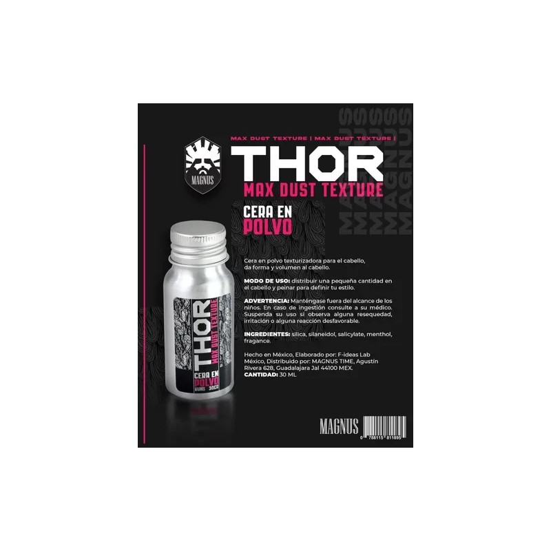 CERA EN POLVO THOR DE MAGNUS es el producto que necesitas para ese peinado con volumen y terminado mate, dale a tu cabello una textura inigualable, con una fijación extrema , útil para peinar todo el día