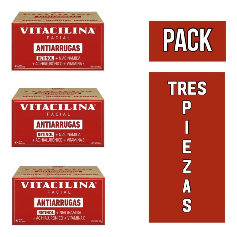 Pack 3 Piezas Vitacilina Facial Antiarrugas 100g.