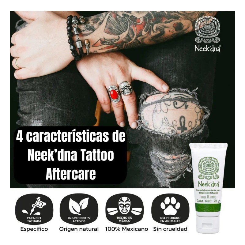 Descripción Limpia: Este pack incluye 3 piezas de "Neek´dna Tattoo Aftercare", el aliado perfecto para el cuidado posterior de tu nuevo tatuaje.