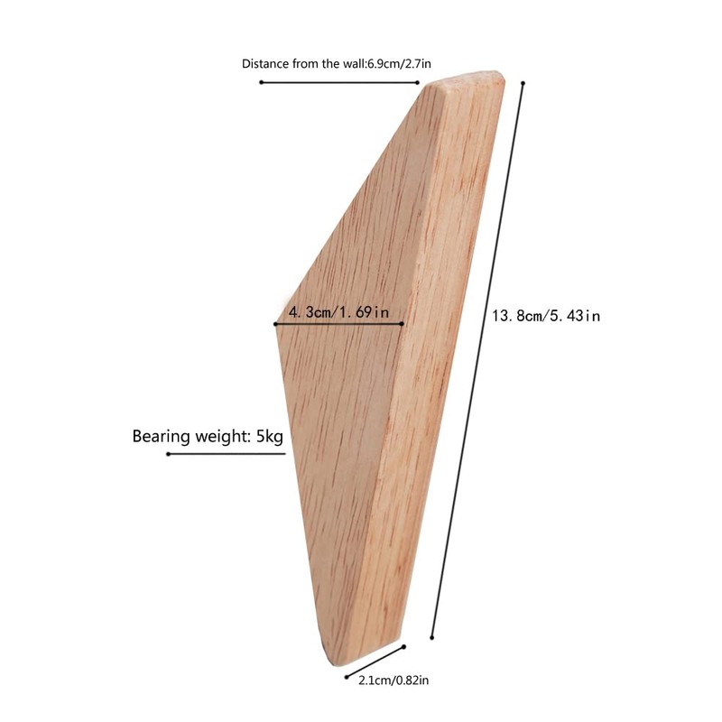 Pack 6 Wooden Hooks Wall Hooks, Coat Hooks, Rubber Wood Hooks Wall Hangers Hooks for Hanging Coats, Hats Hooks, Bags Hooks Towels Hooks, Decorations Triangle Hook