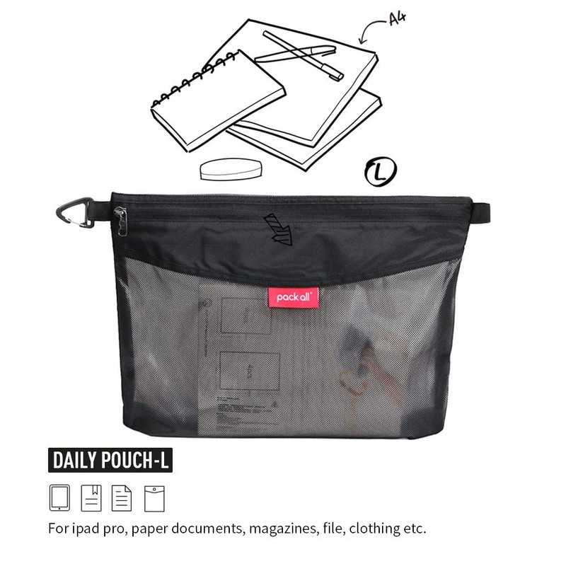 pack all Water-resistant Material Zipper Pouch, Mesh Zipper Bags for Storage, Travel, Office (Black, Large)