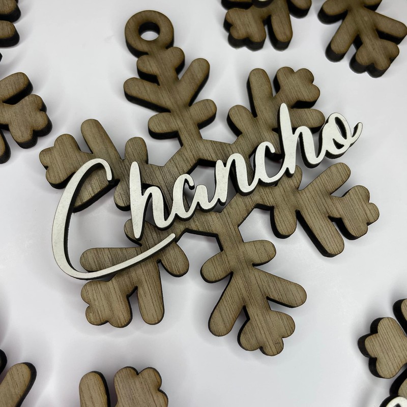 Pack Esferas Navideñas Personalizadas con Nombre MDF enchapada con Nogal Adornos Navideños Para Arbol De Navidad