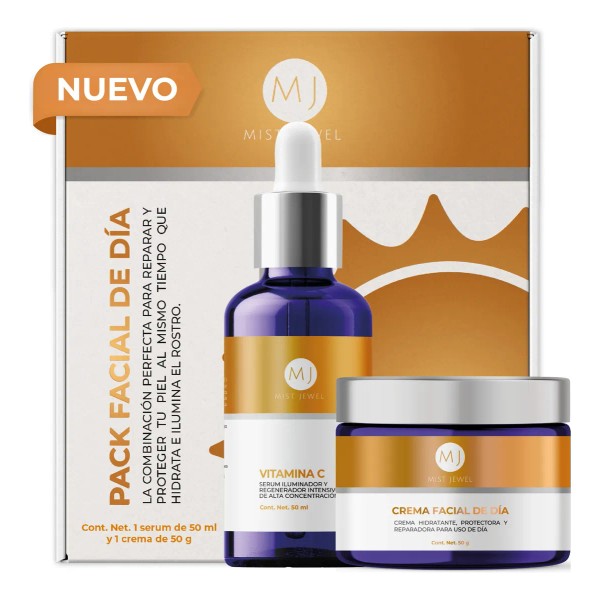 Imagina un amanecer radiante reflejado en tu piel, una luminosidad que irradia salud y vitalidad. ¡Deja de soñar y hazlo realidad con nuestro irresistible Pack Facial Día Protección Total! ✨ Este dúo dinámico, diseñado por la marca mexicana Mist Jewel, te ofrece la sinergia perfecta para comenzar tu día con una barrera de protección e hidratación que desafía el paso del tiempo. 🇲🇽