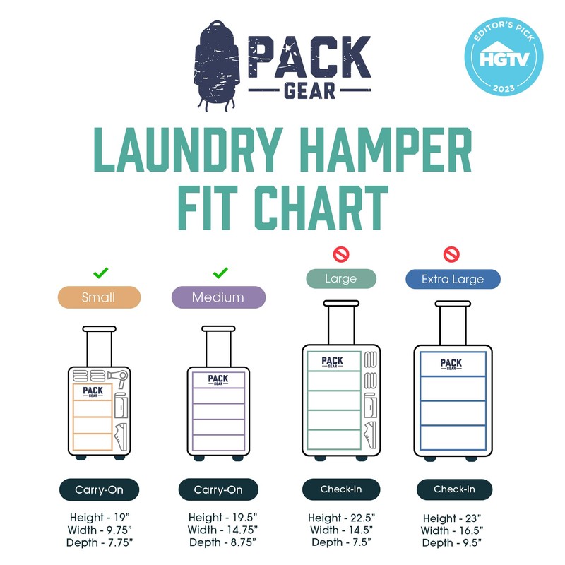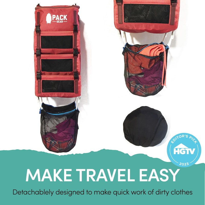 Pack Gear Travel Laundry Hamper, Odor Eliminator, Resistant Cloth, Pair with Pack Gear Hanging Travel Organizers