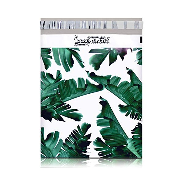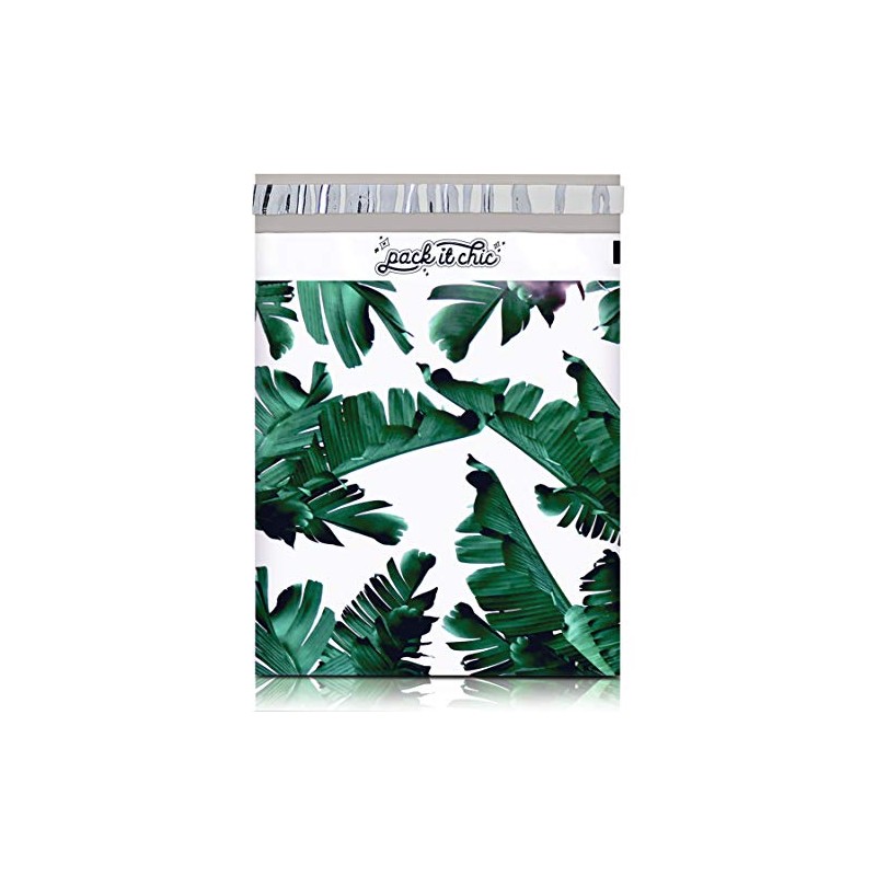 Pack It Chic - 10X13 (100 Pack) Tropical Leaves Poly Mailer Envelope Plastic Custom Mailing & Shipping Bags - Self Seal
