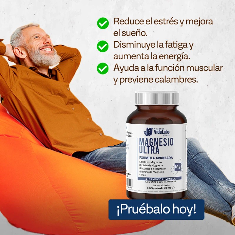 🔹 Magnesio Ultra VidaLabs: 1 cápsula diaria con alimentos